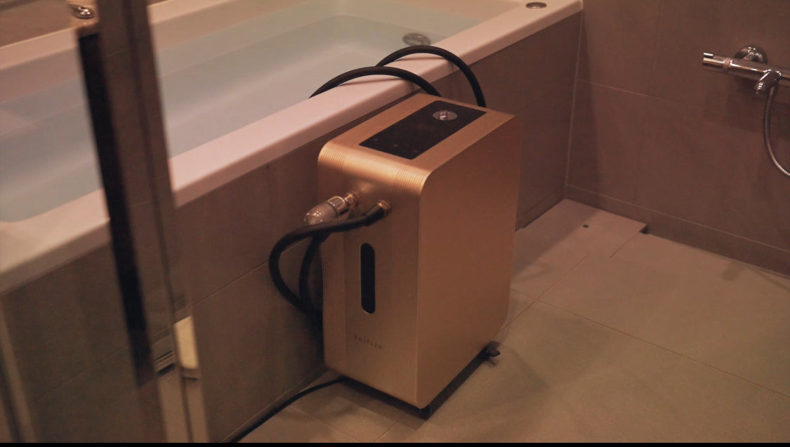 わずか数分で、浴槽がまるごと水素バスになります。